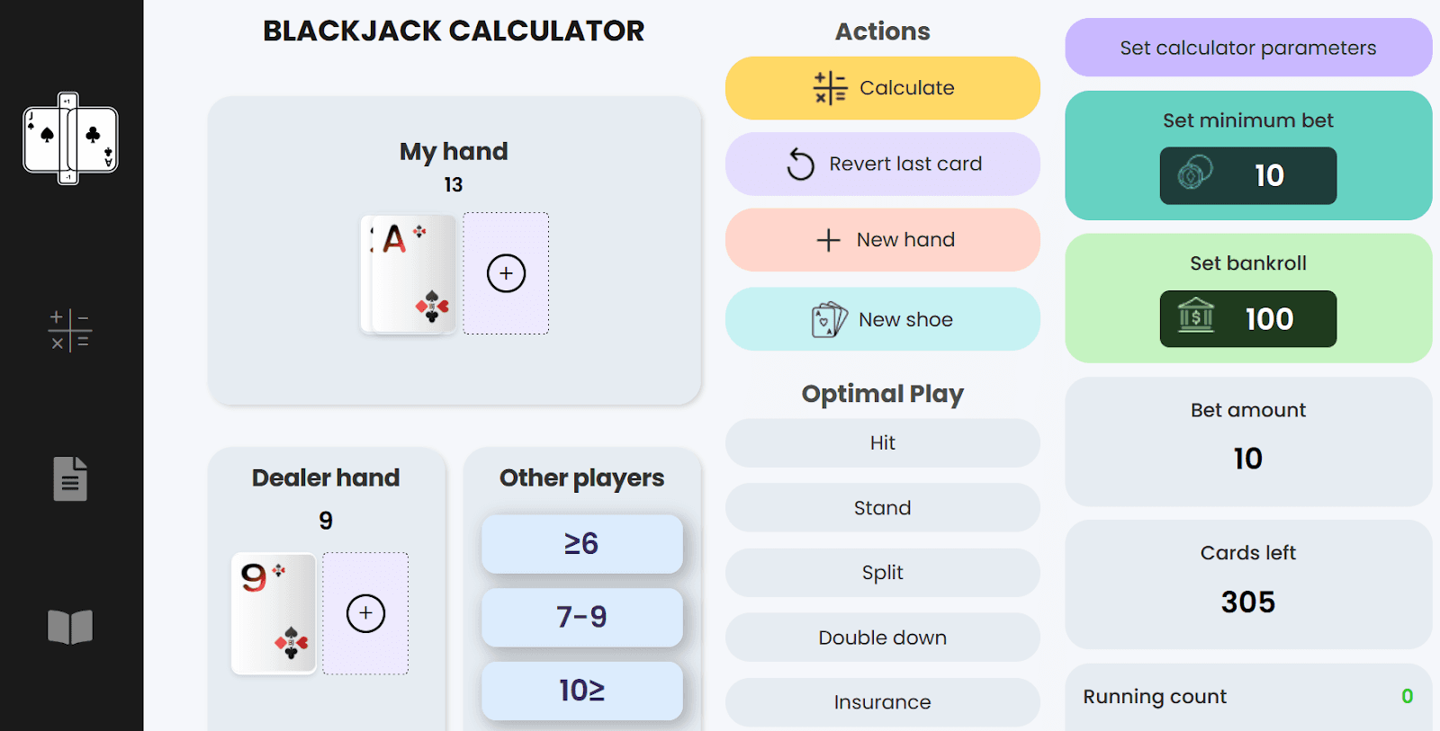Топовые игроки знают таблицу блэкджека наизусть. Без труда можно найти и онлайн-калькулятор для блек джека. Пользователь указывает свою руку и карты дилера, программа предлагает лучшее действие. Продвинутые калькуляторы учитывают и количество других гостей за столом.