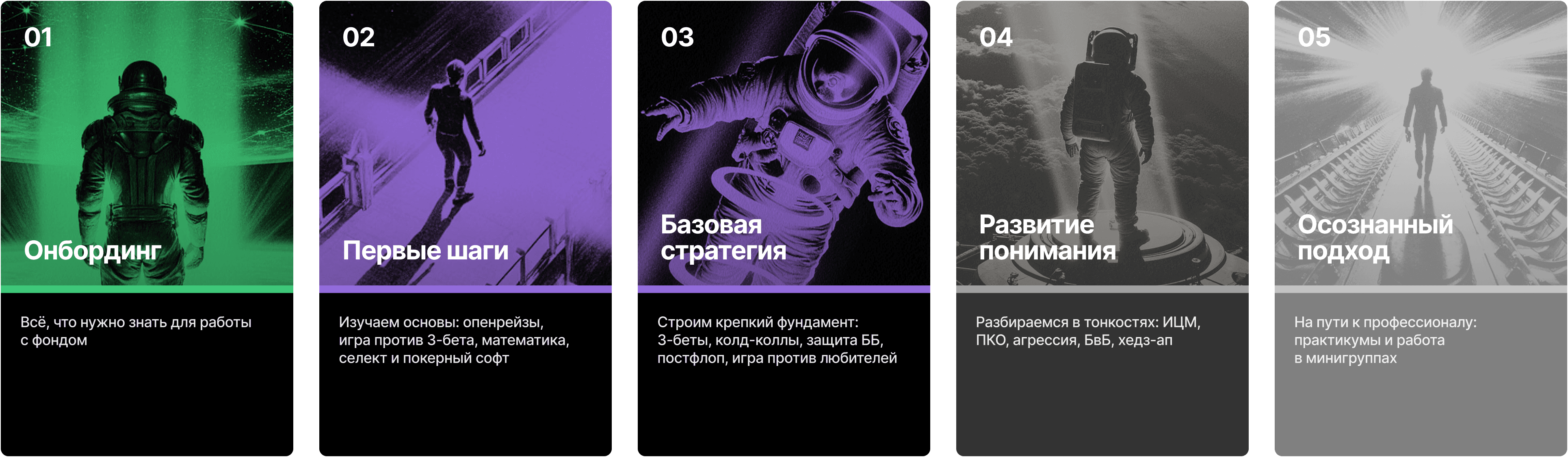 Thousands of players have already passed through our school, and we know exactly what knowledge is needed and when for rapid progress. We have collected this experience in the Player's Path — a thoughtful yet dynamic system that not only guides step by step towards results but also makes learning interesting and engaging.