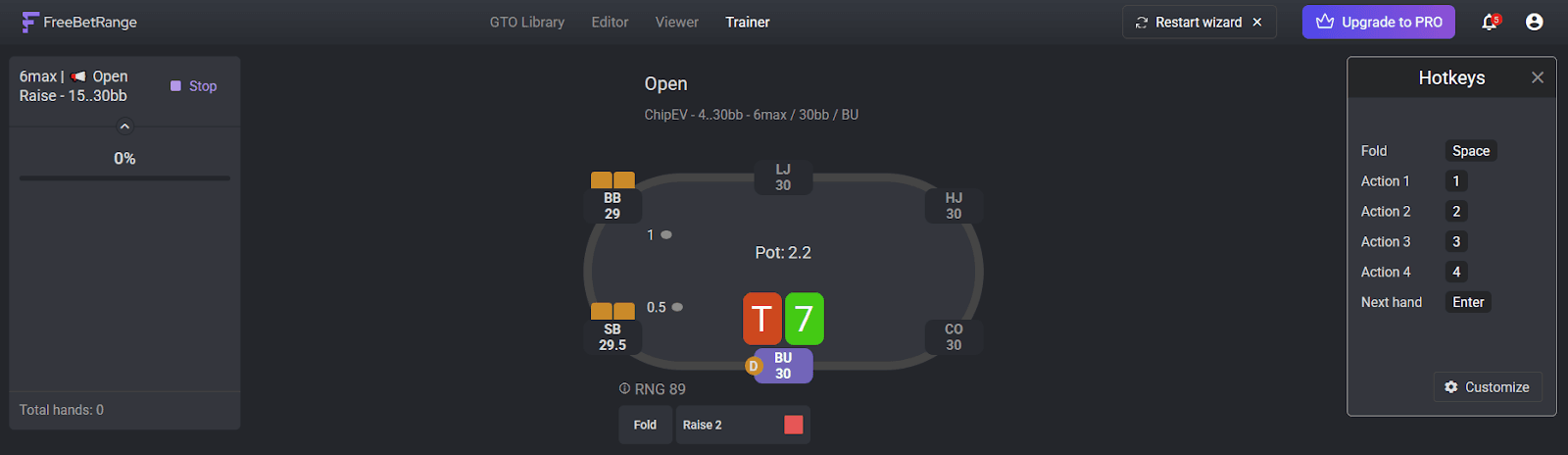 Рекомендуем FreeBetRange. Бесплатная версия дает возможность конструировать и тренировать диапазоны. Приложение поддерживает импорт истории рук из других калькуляторов. Чтобы работать в FreeBetRange, нужно создать учетную запись на сайте продукта.