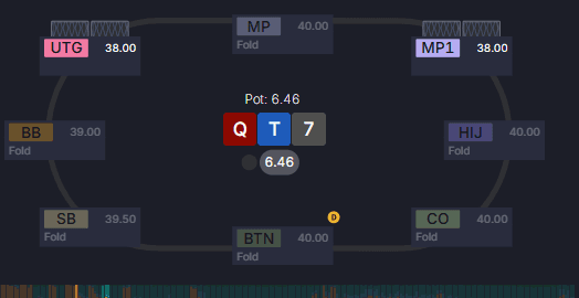 Ситуация: мы открылись с UTG и получили колл от игрока на MP. Остальные игроки сыграли пас.