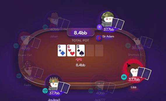 Ситуация: мы открылись с UTG, получили колл на баттоне и колл от BB. На флопе выходит дровяная доска 9♦ 6♥ 5♠.