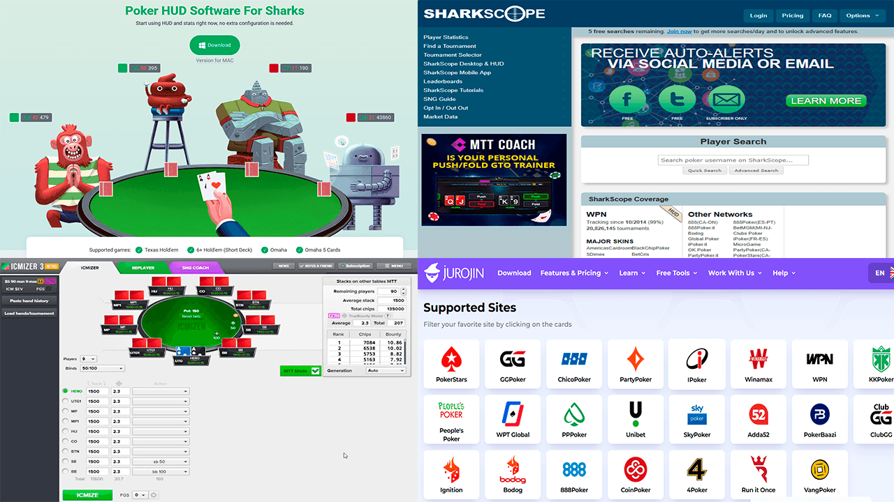 Альтернативы. Главная ценность Jurojin Poker — универсальность. Софт поддерживает большинство популярных румов и приложений. Однако есть и специализированные инструменты для конкретных платформ: