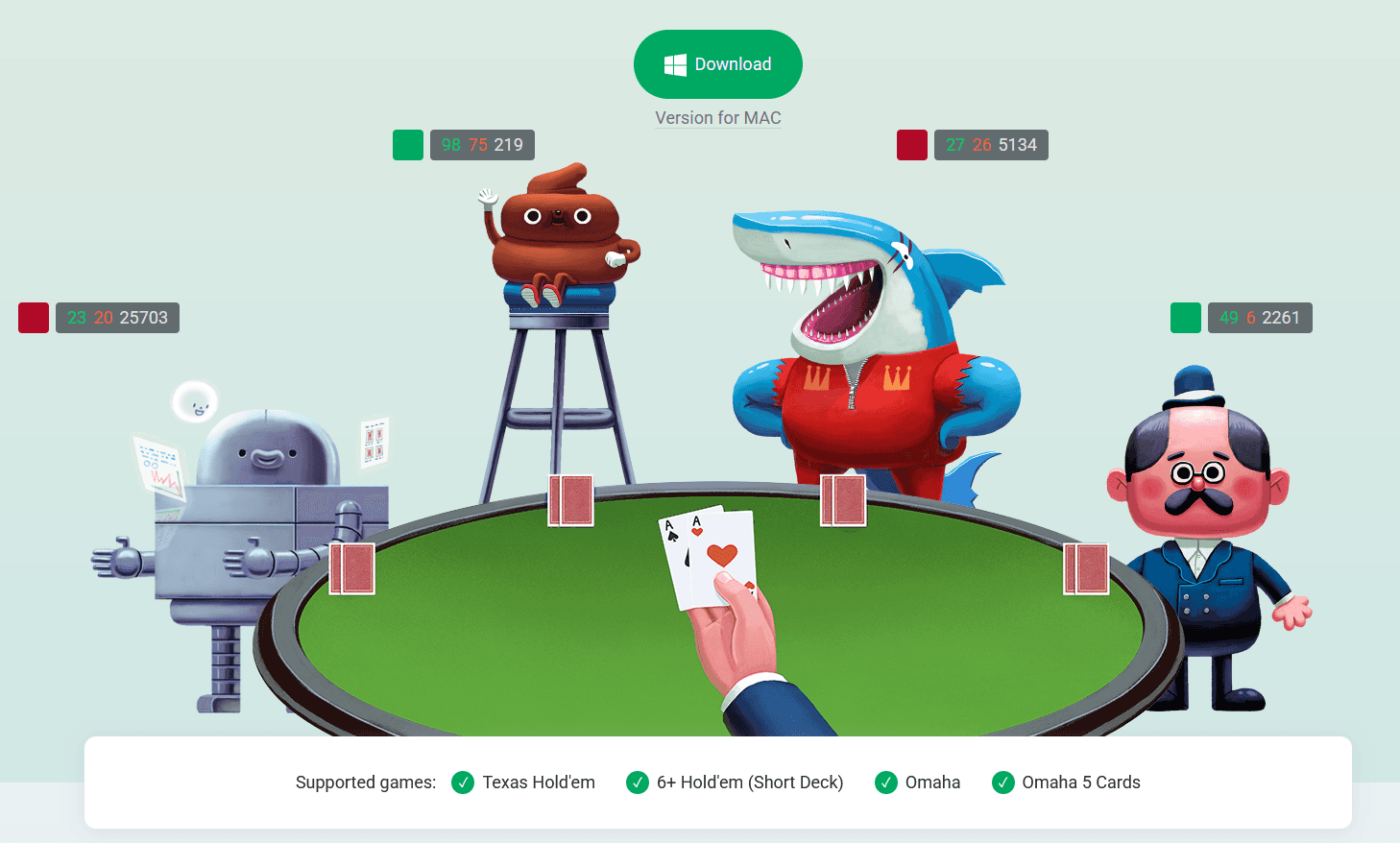 Незаменимый инструмент для игроков: MTT, Sit&Go, Spin&Go. Пользователь может как загрузить свою историю рук для анализа, так и отрабатывать решения в тренажере. ICMIZER способен: автоматически разобрать сессию игрока, найти ошибки и предложить плюсовые действия. Есть версия софта для браузера.