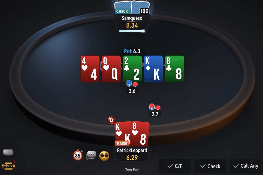 NL100. Допустим в раздаче участвовали два игрока: Игорь и Лив. Игорь сделал рейз на префлопе, Лив ответила коллом. К флопу в центре стола лежали 7.5 больших блайндов. Игорь поставил 5 ББ и Лив вышла из розыгрыша. Итоговый банк равен 12.5 ББ или $12.5. В вакууме PokerKing возьмет рейк 0.05 х $12.5 = $0.62. Однако на NL100 у платформы есть кэп рейка $0.50. В результате Игорь отдаст $0.50.