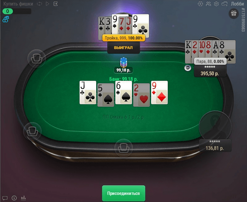 PokerOK. Больше всего внимания покеру с четырьмя картами уделяет ПокерОК. Ежедневно рум организует свыше 100 турниров по правилам PLO. В крупнейшем регулярном MTT разыгрывают $4,000. Включают турниры по омахе и в онлайн-фестивали. Например, в январе 2026 года PokerOK провел Omaholic Bounty с гарантией $500,000. Иногда рум организует и отдельные серии по PLO. Например, летом 2025 года на ПокерОК прошел фестиваль Omaholic Series с призовым фондом $10,000,000.