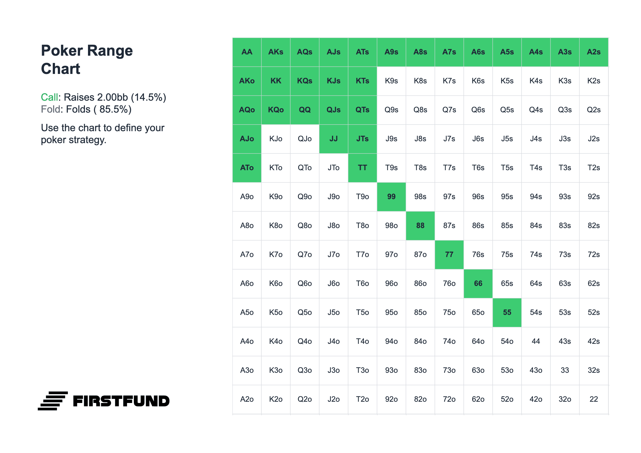 Помимо описания основных черт диапазонов мы приведем покерные чарты для визуализации. Как их читать и пользоваться в обучении мы рассказали в этой статье.