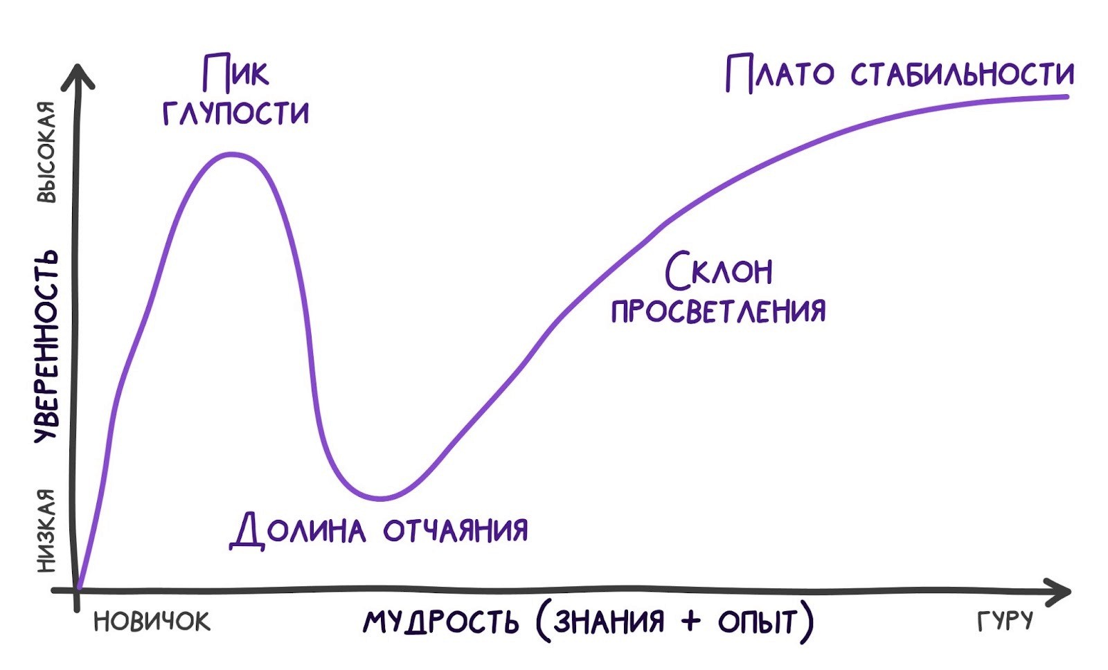 Каждый профессионал проходит через иллюзию знания, сомнение и просветление. Главное — не останавливаться в «долине отчаяния», а идти дальше — шаг за шагом.
