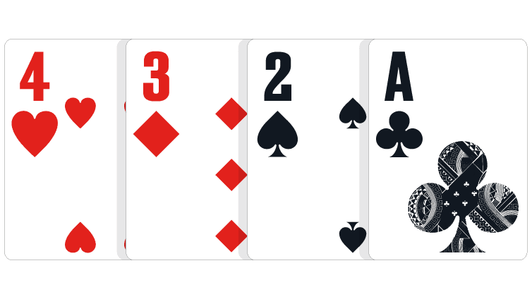 Младший стрит формируют другие карты. В полной колоде слабейший стрит состоит из A-2-3-4-5. В шортдеке в комбинацию входят A-6-7-8-9.